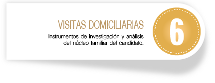 Se realiza la visita al hogar del candidato preseleccionado en el cual se verifica la composición del núcleo familiar, nivel socioeconómico del individuo, distribución de espacios sociales, análisis del entorno familiar y social, conducta personal y familiar. Es realizada por nuestros psicólogos o trabajadores sociales.